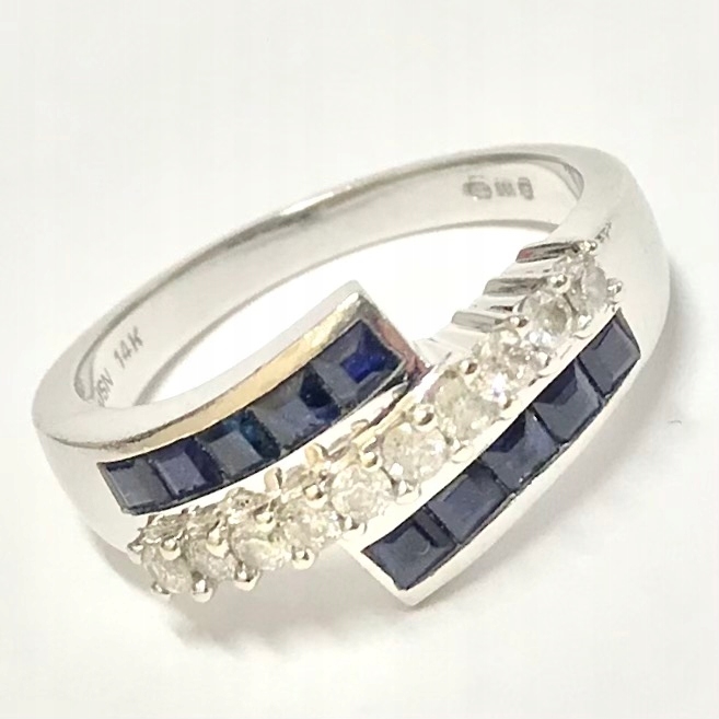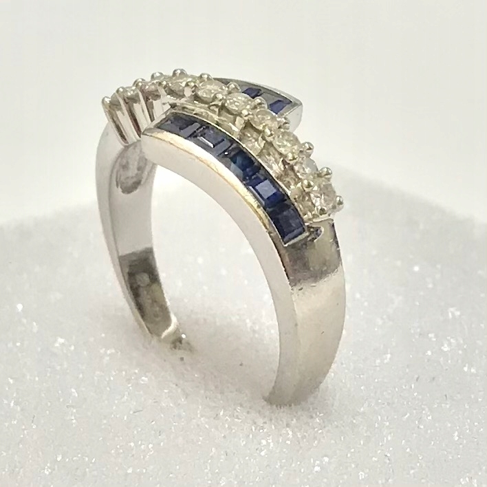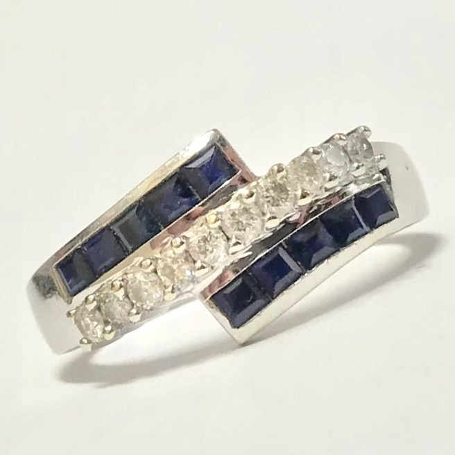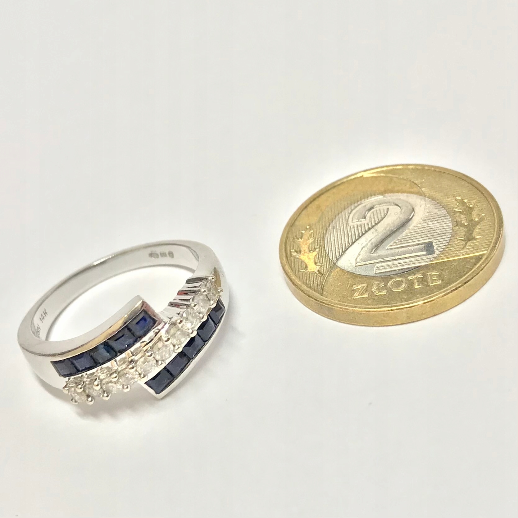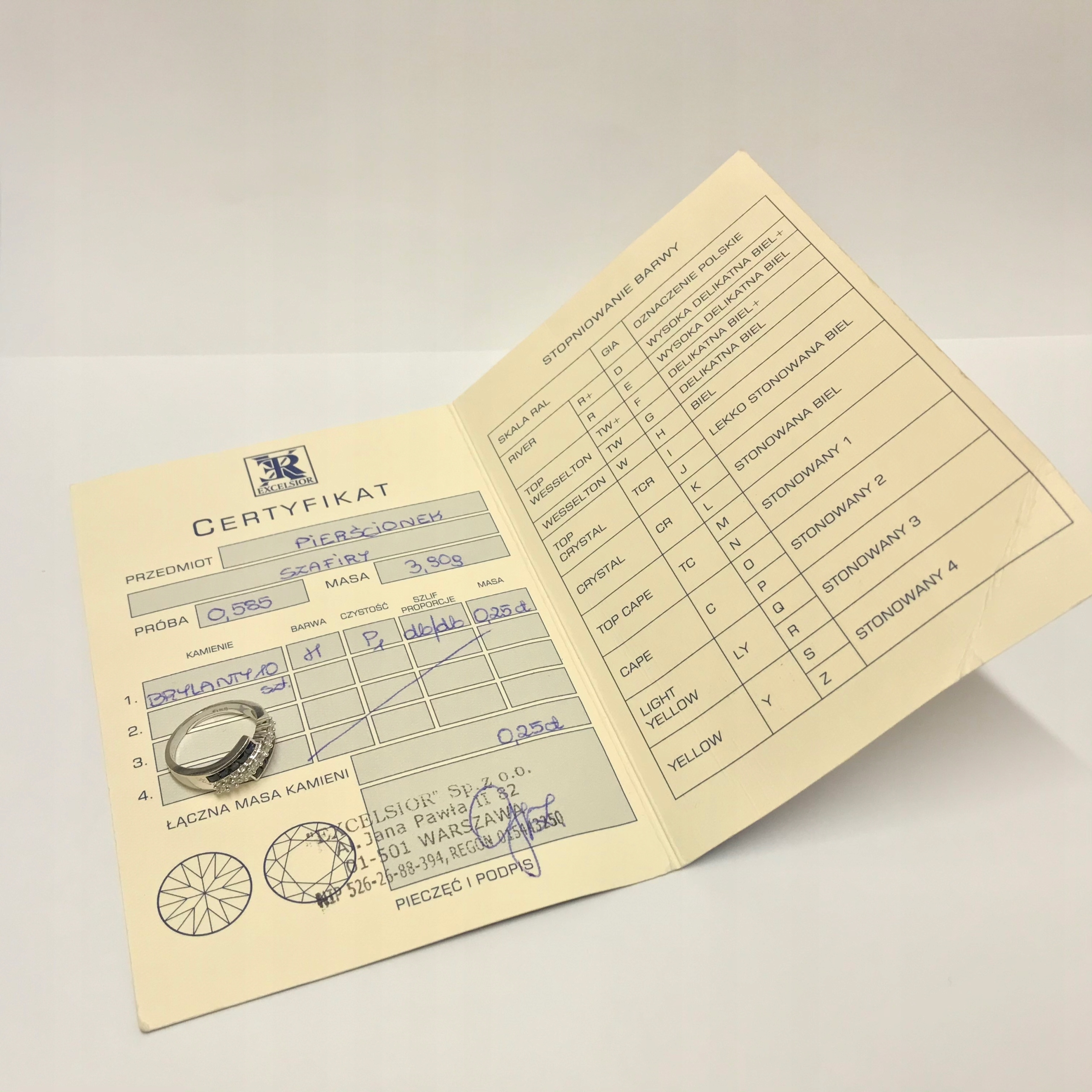 Złoty PIERŚCIONEK 585 14K SZAFIR BRYLANT 0.25ct 13