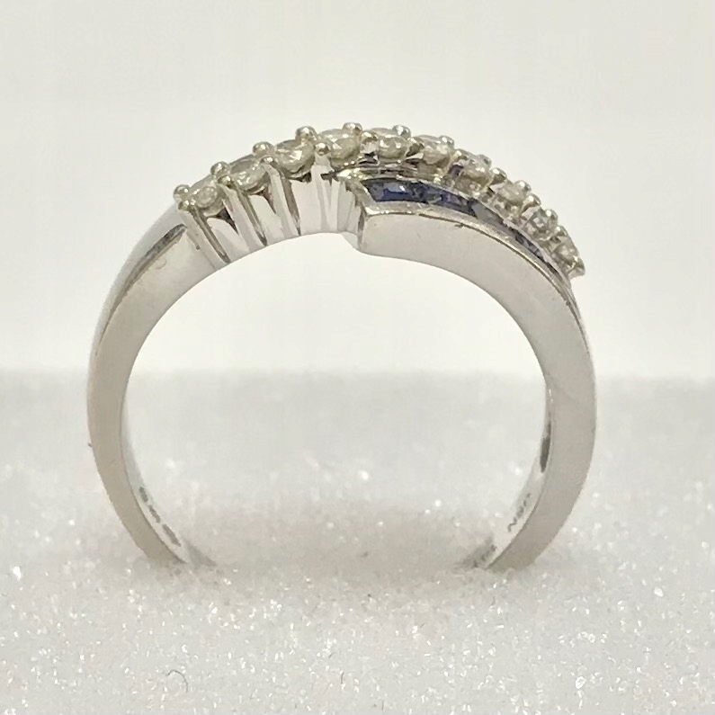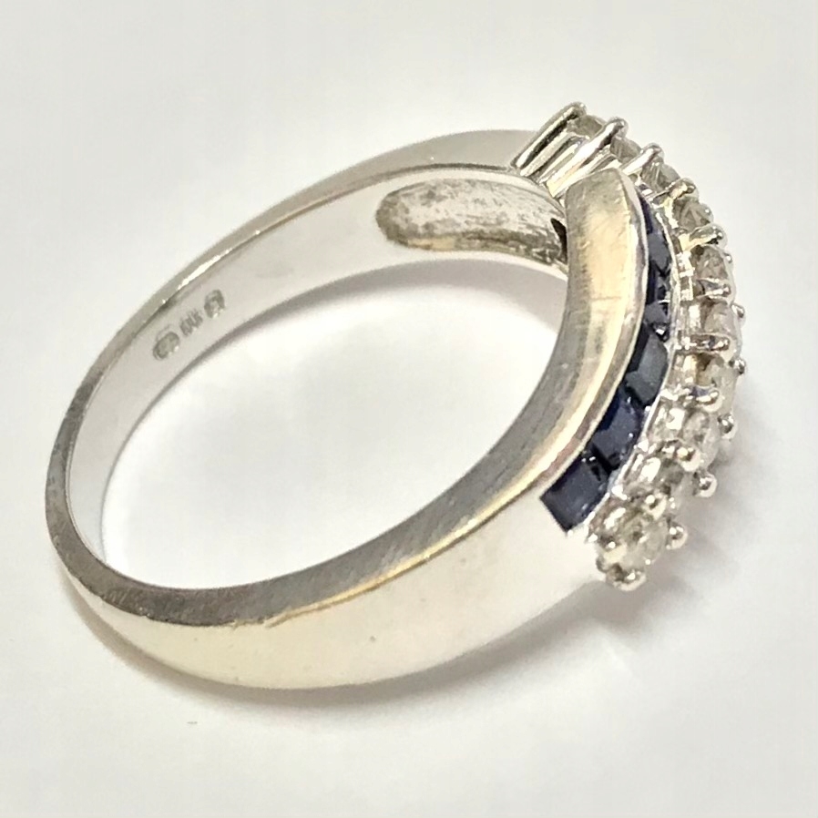 - Piękny pierścionek wykonany z białego 14-karatowego złota.
