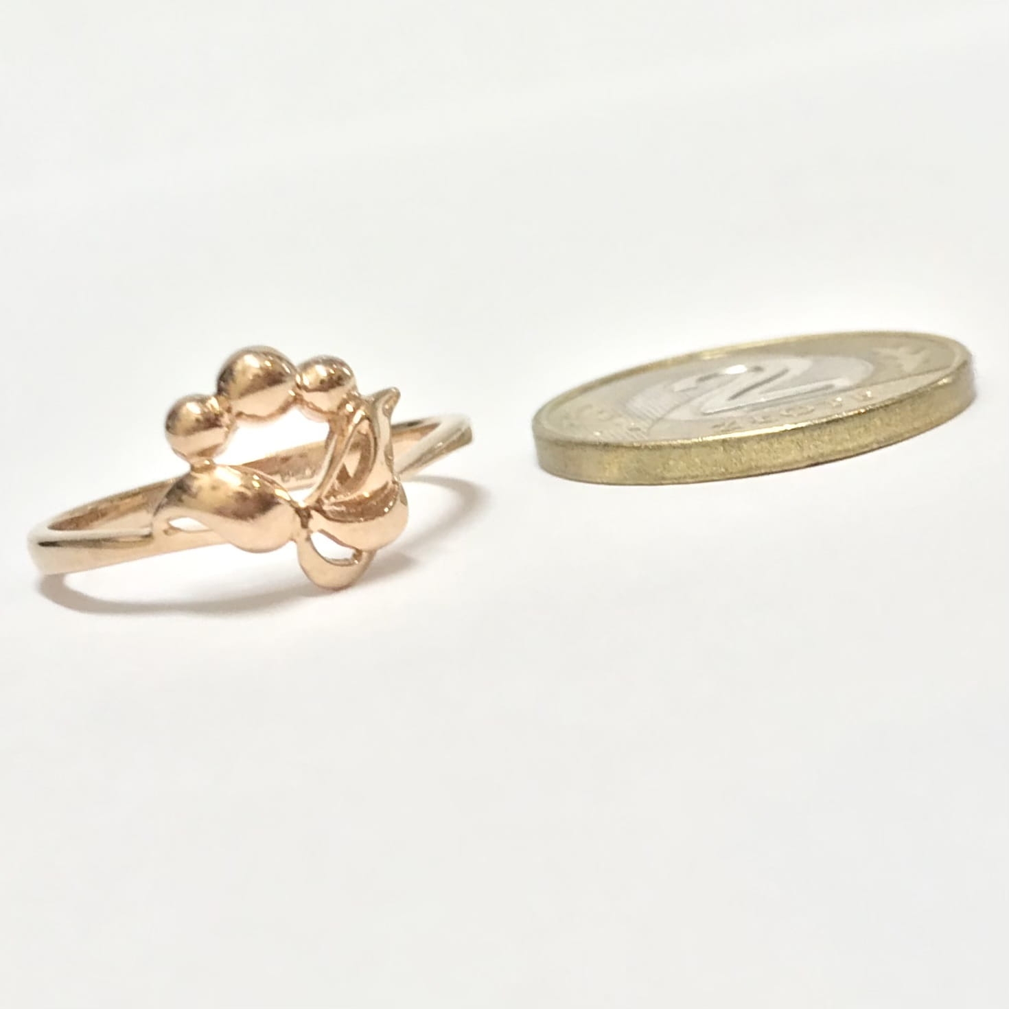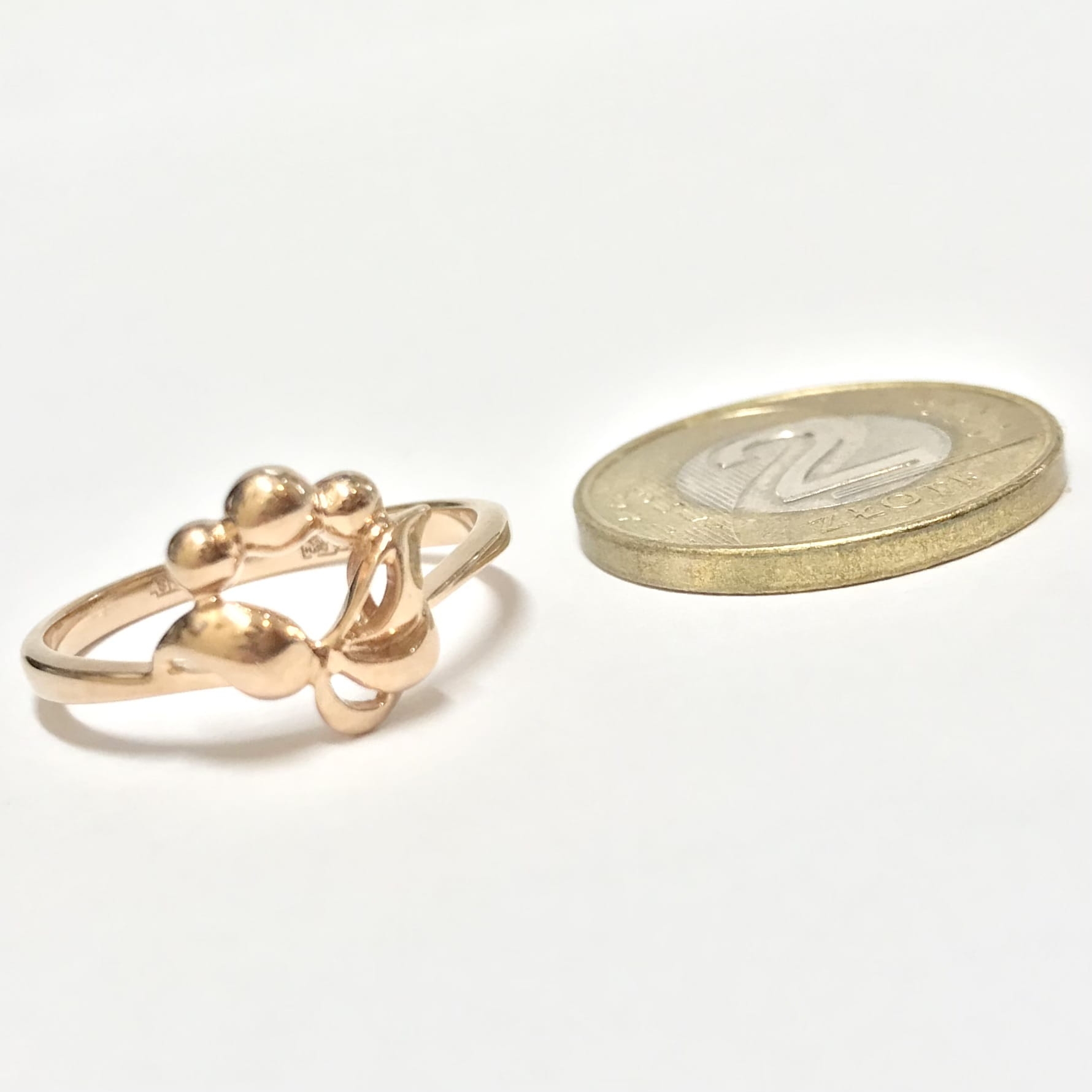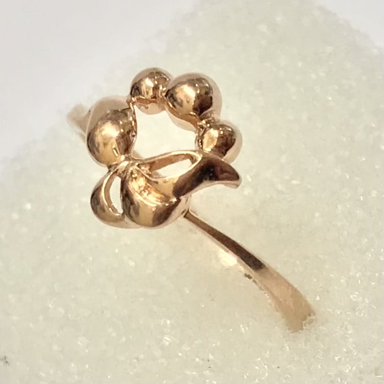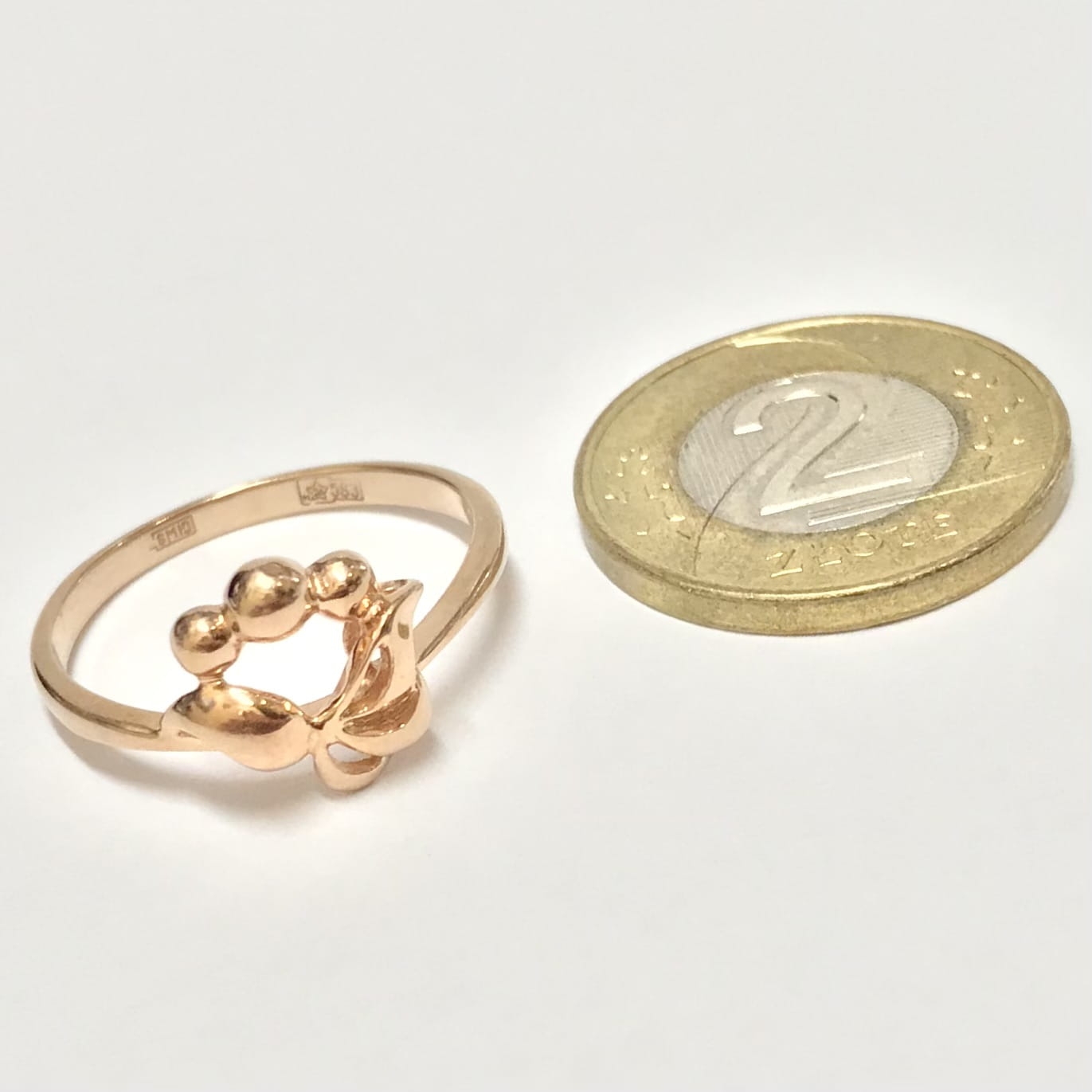 Piękny pierścionek wykonany z różowego 14-karatowego złota.