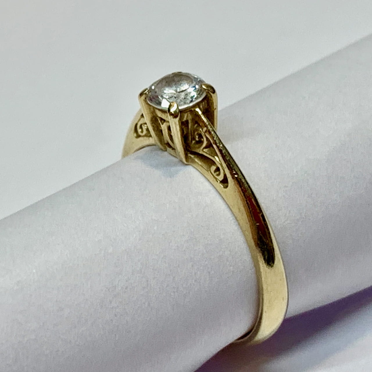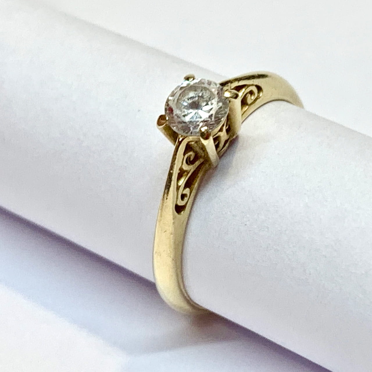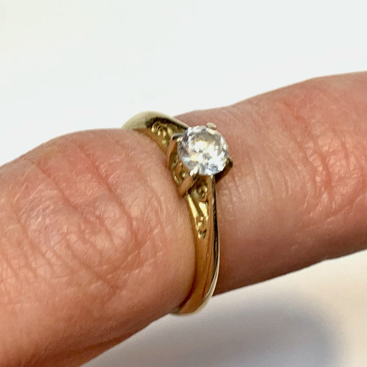 Złoty PIERŚCIONEK 585 14K piękny KAMIEŃ jak DIAMENT r. 12