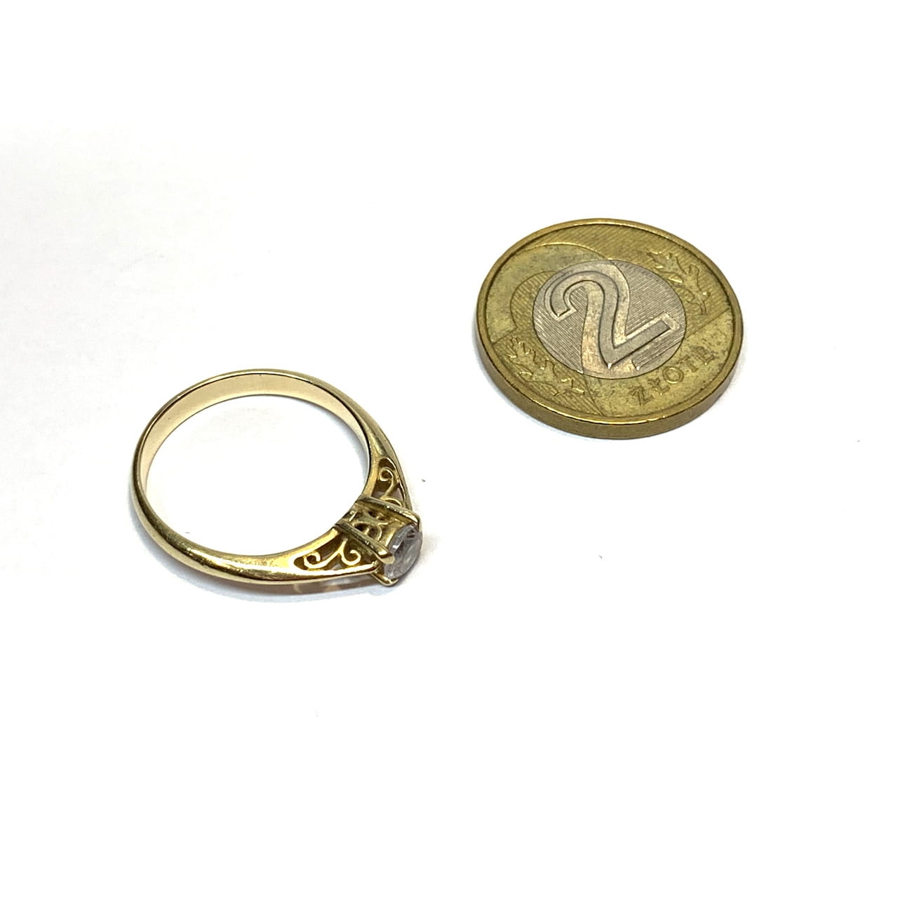 Żółte złoto / 2,33 g / 585, tj. 14 karatów / 12, tj. 16,5 mm.