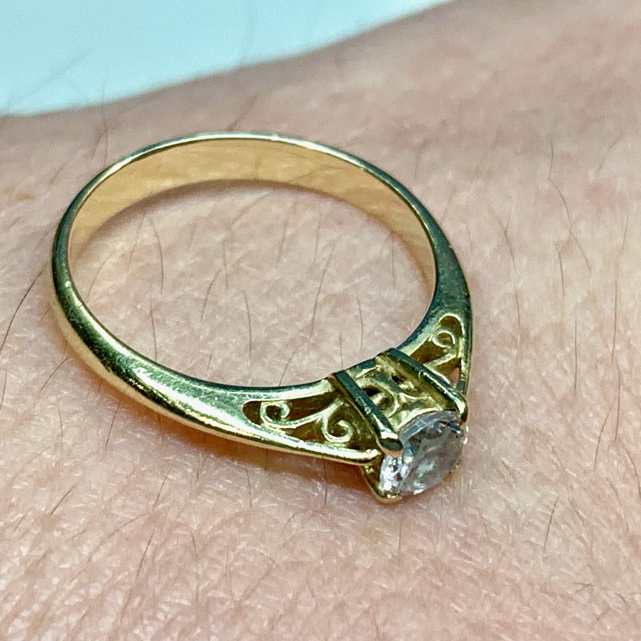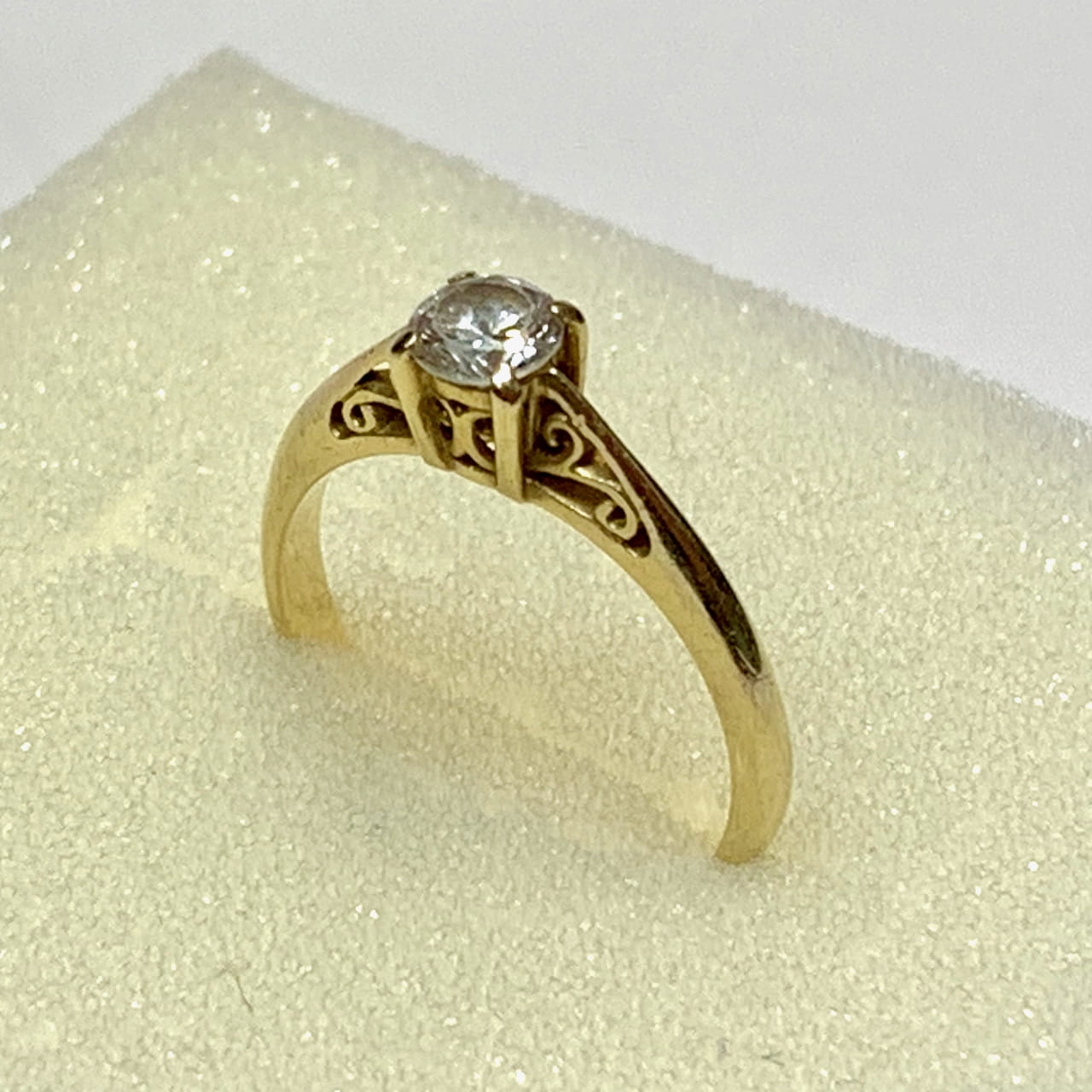 Piękny pierścionek wykonany z żółtego 14-karatowego złota.