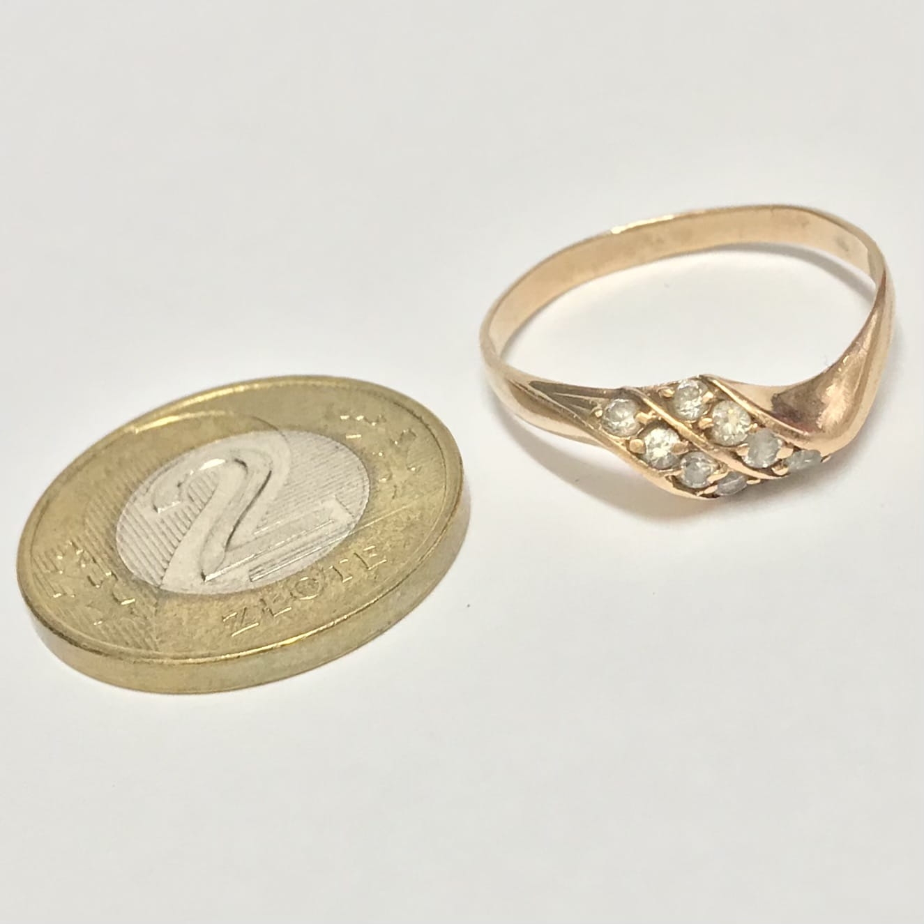 Złoty PIERŚCIONEK 585 14K z różowego ZŁOTA cudowne KAMIENIE r.19