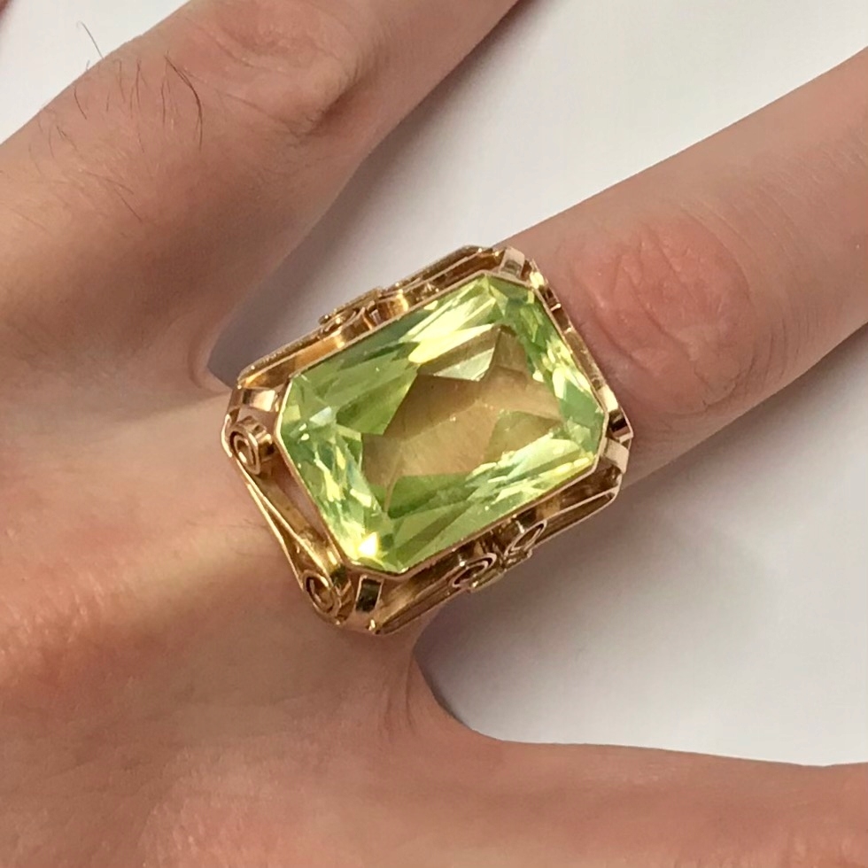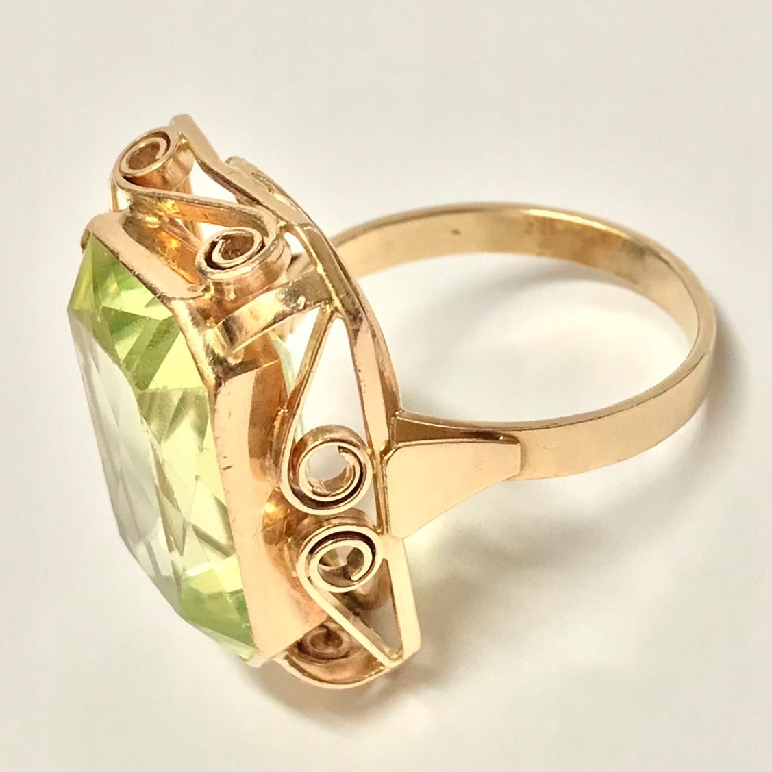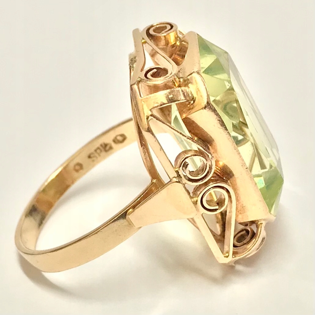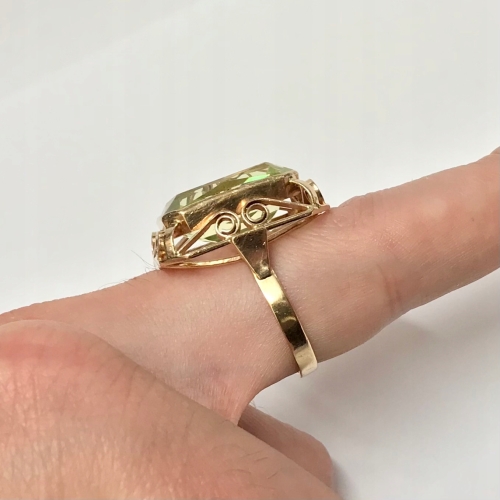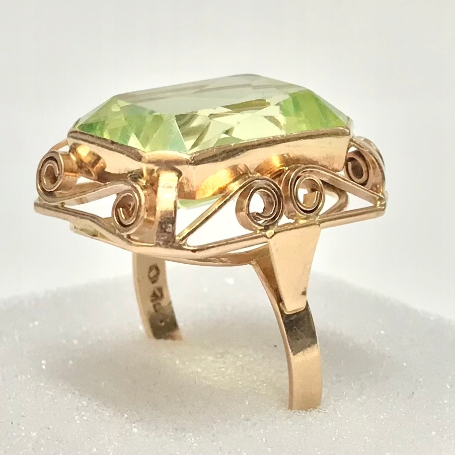 - Piękny pierścionek wykonany z żółtego 14-karatowego złota.