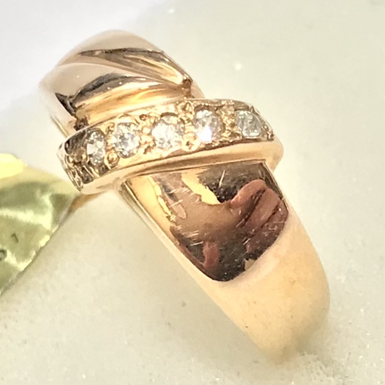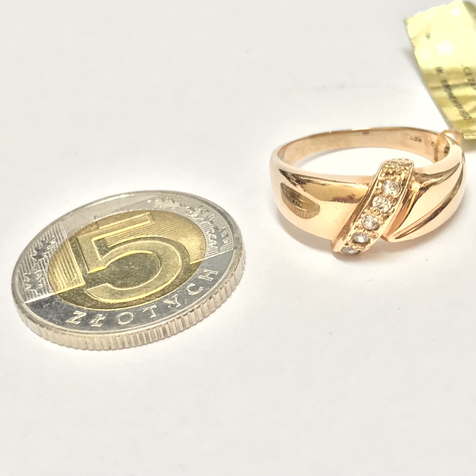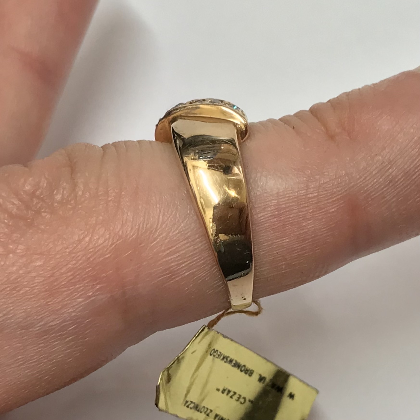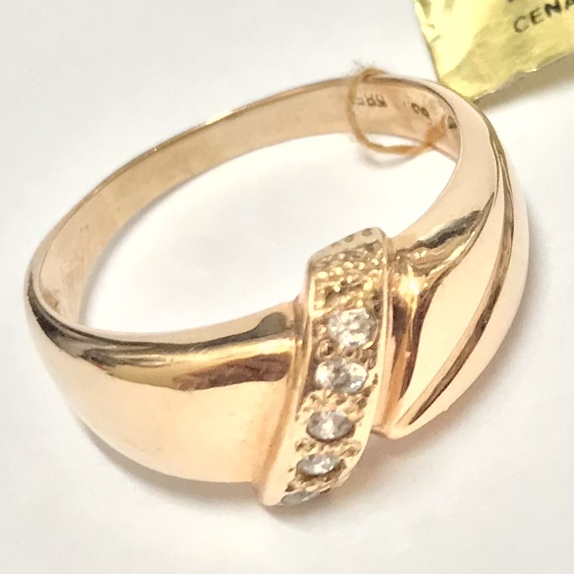 Złoty PIERŚCIONEK 585 14K żółte ZŁOTO kamienie RĘCZNA robota r.16