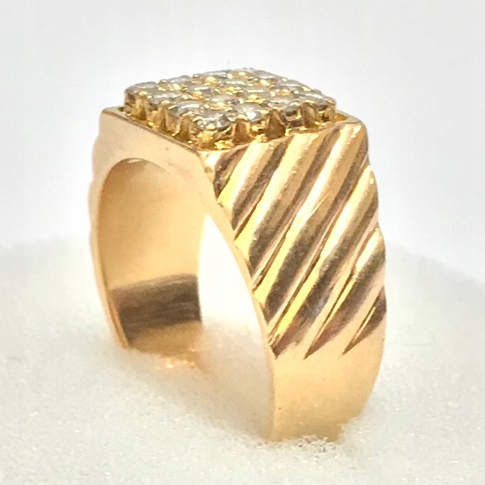 - Piękny pierścionek wykonany z żółtego 22-karatowego, niemal czystego złota.