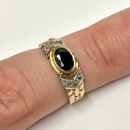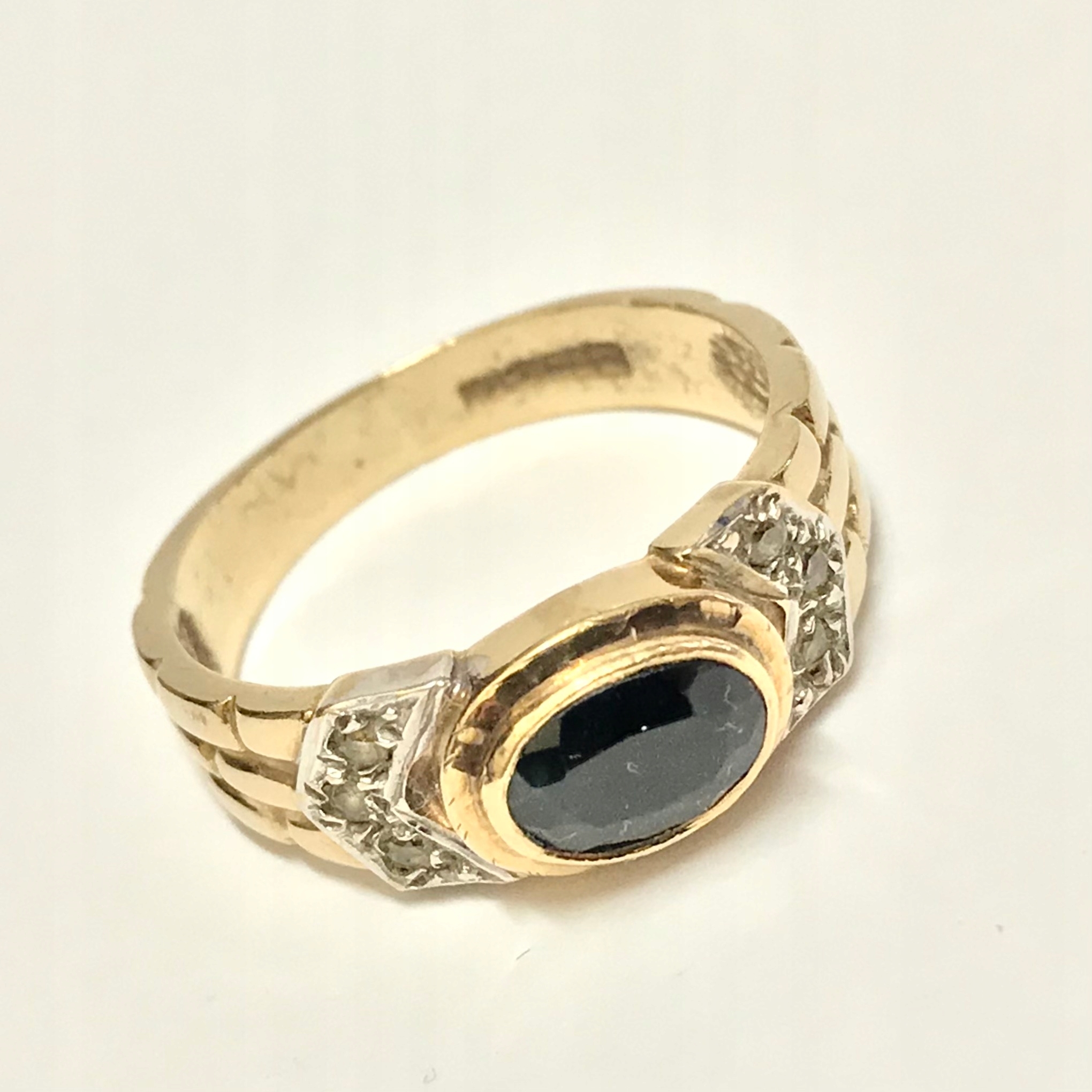 Złoty PIERŚCIONEK 9K cudny SZAFIR cyrkonie r. 16