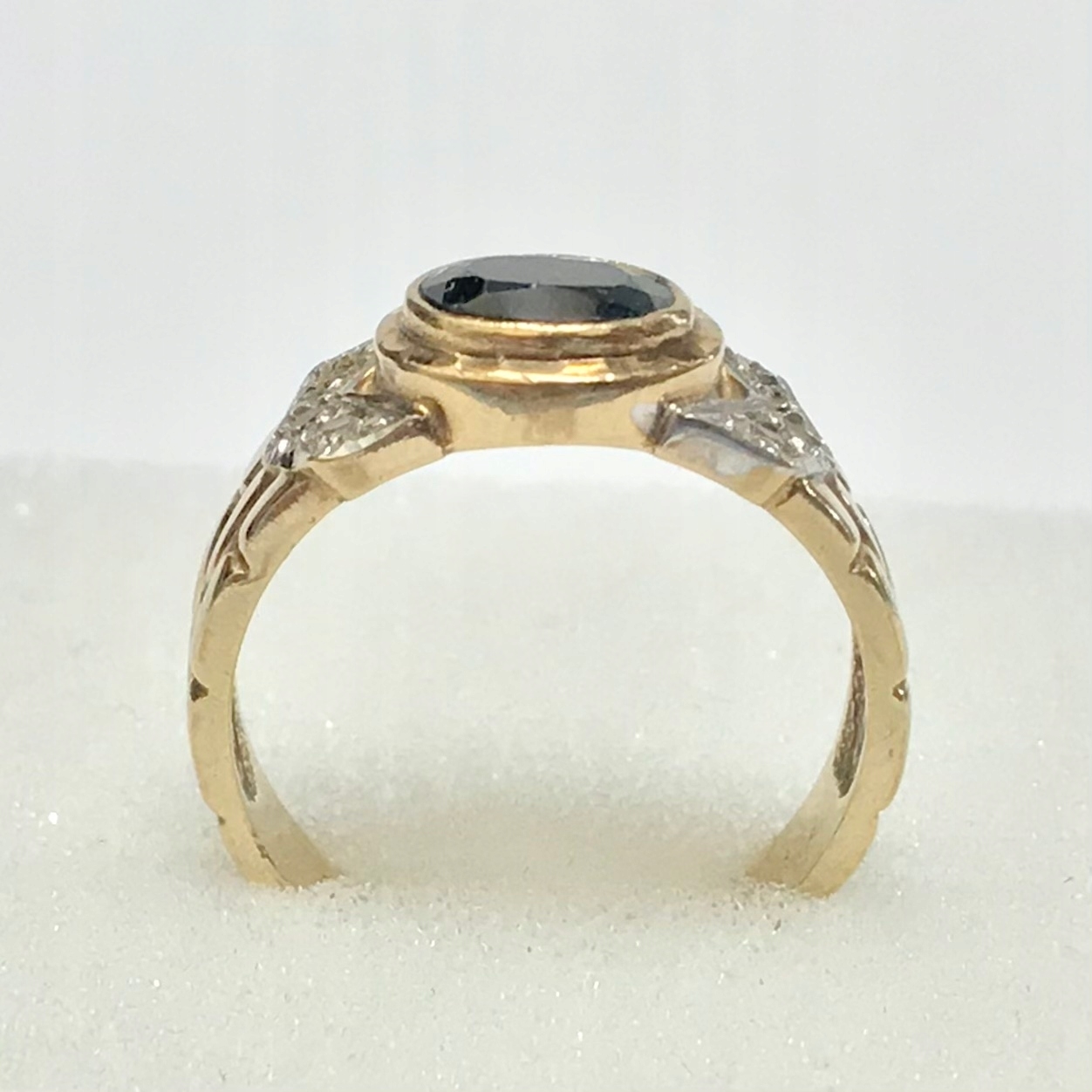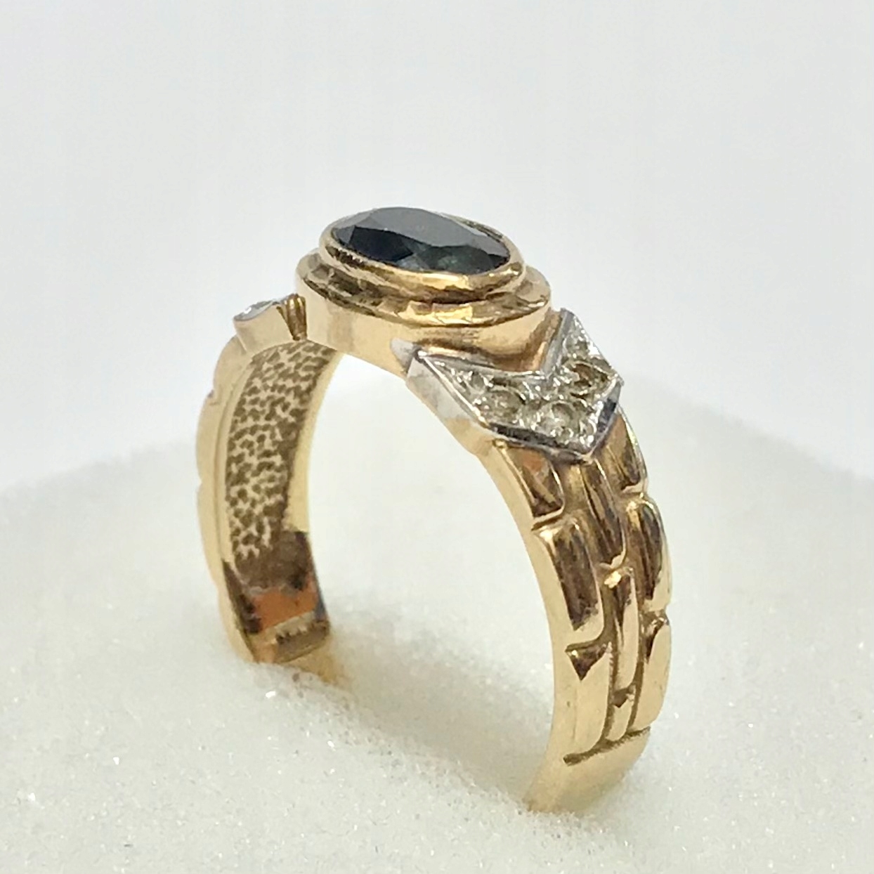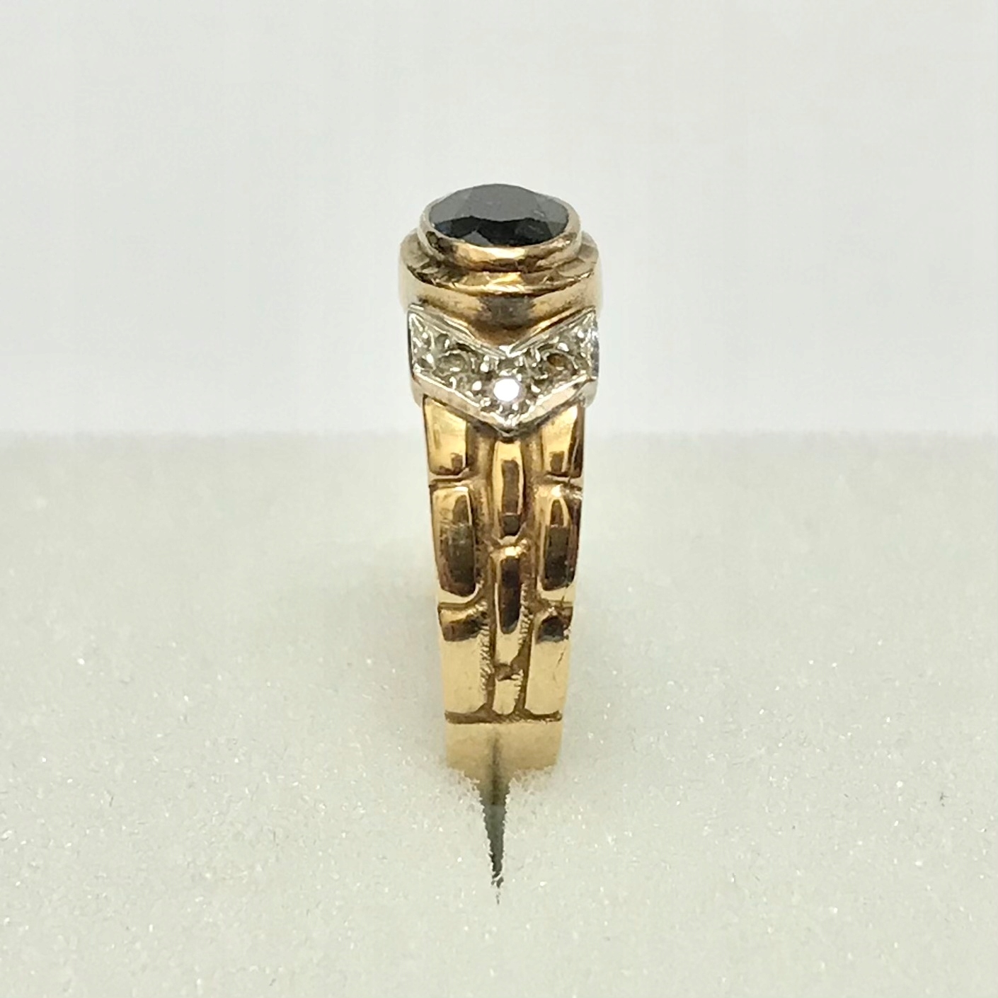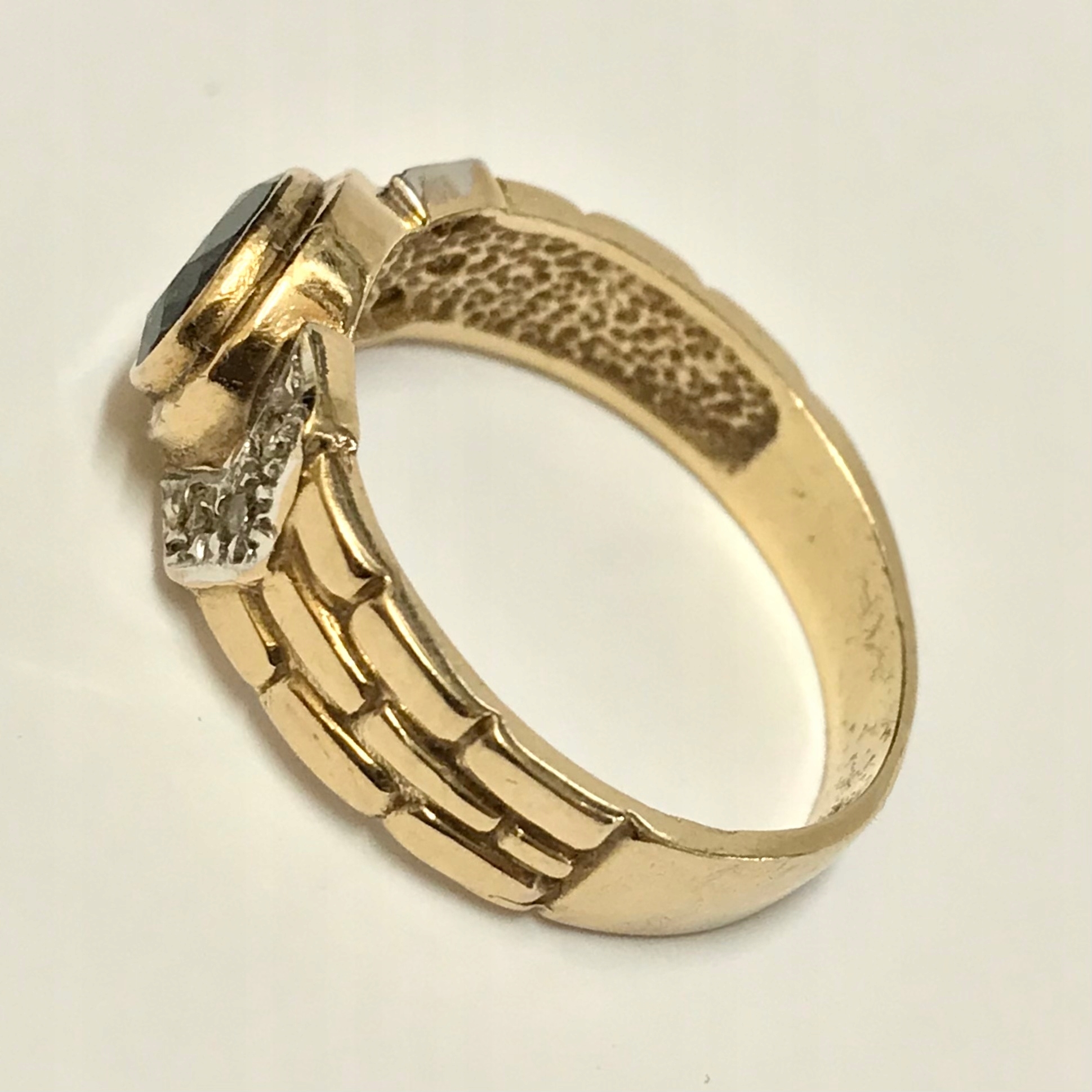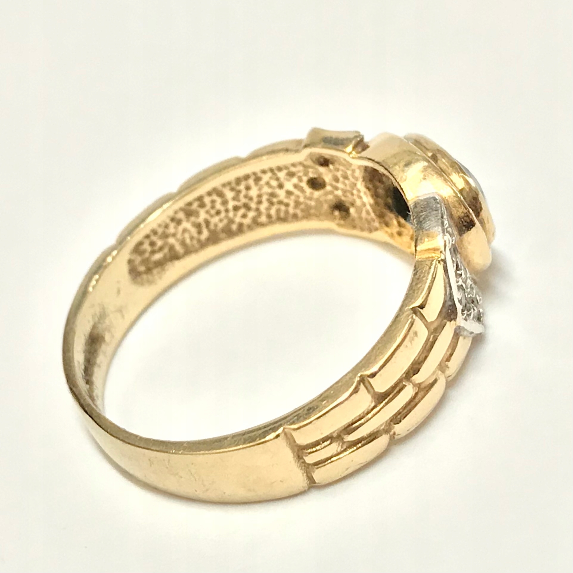 - Piękny pierścionek wykonany z żółtego 9-karatowego złota.