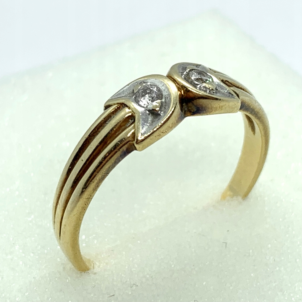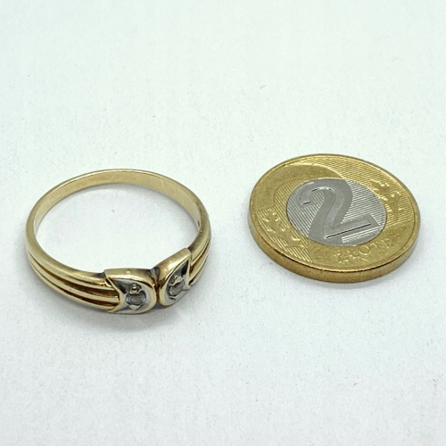 - Piękny pierścionek wykonany z żółtego i białego 14-karatowego złota.