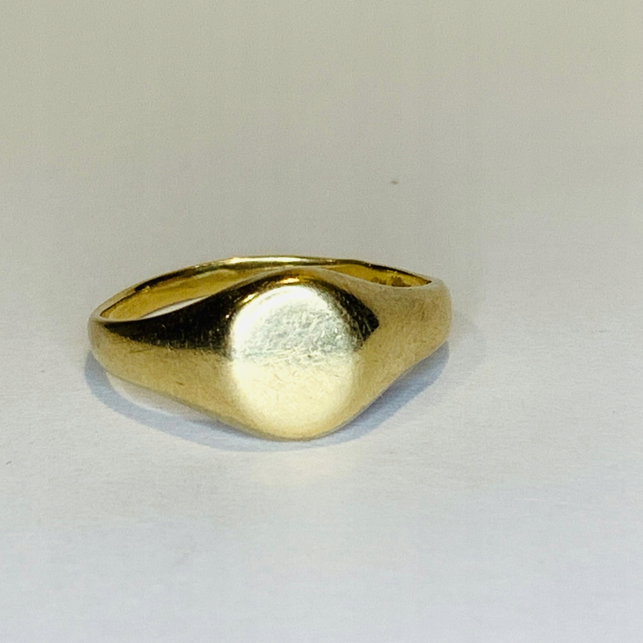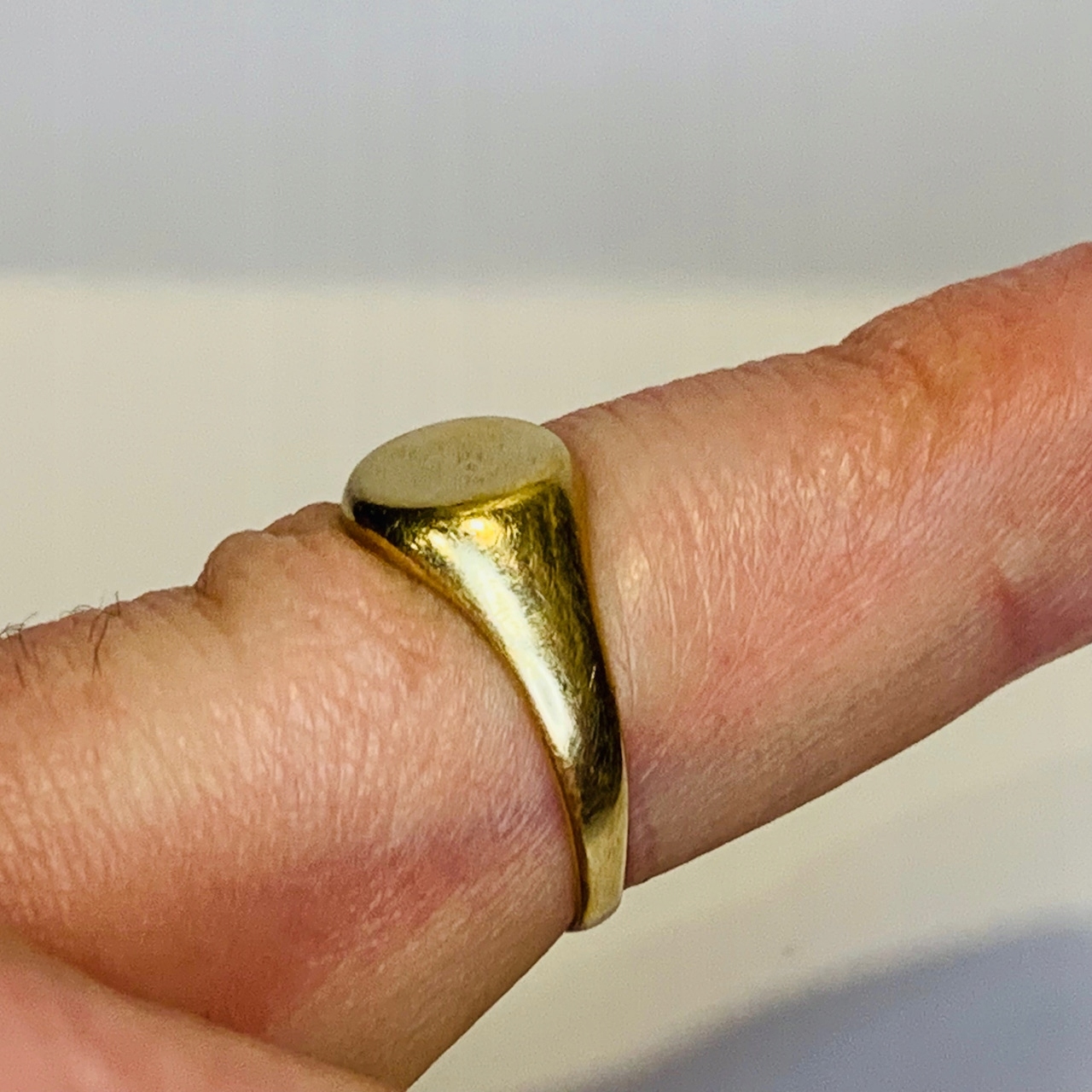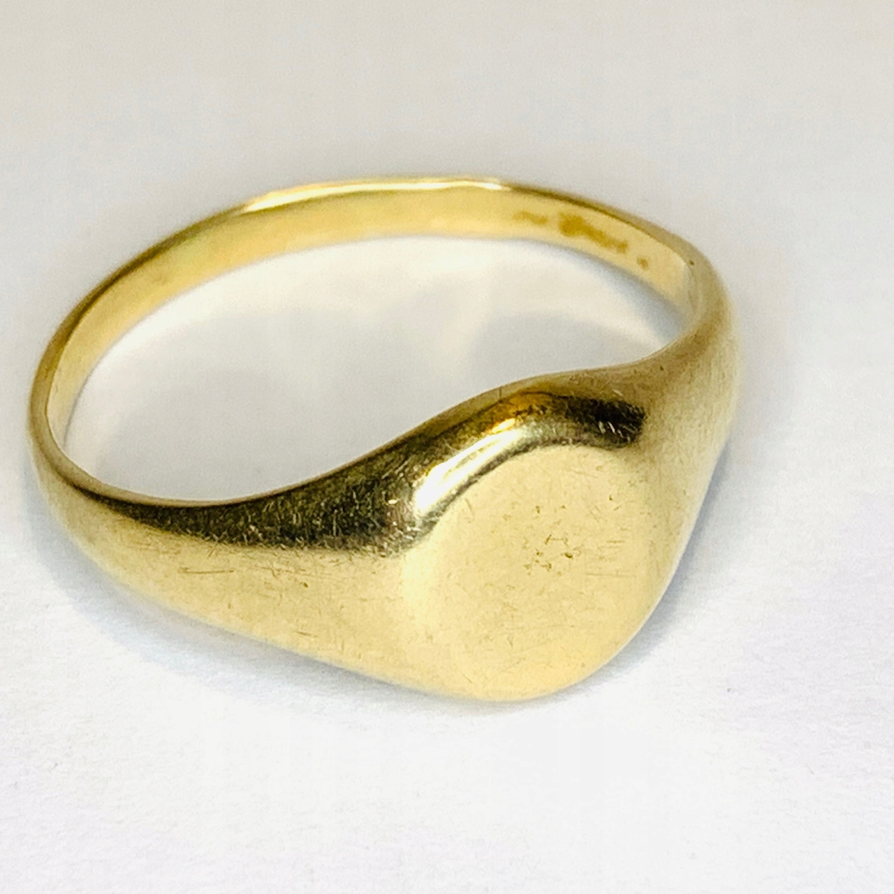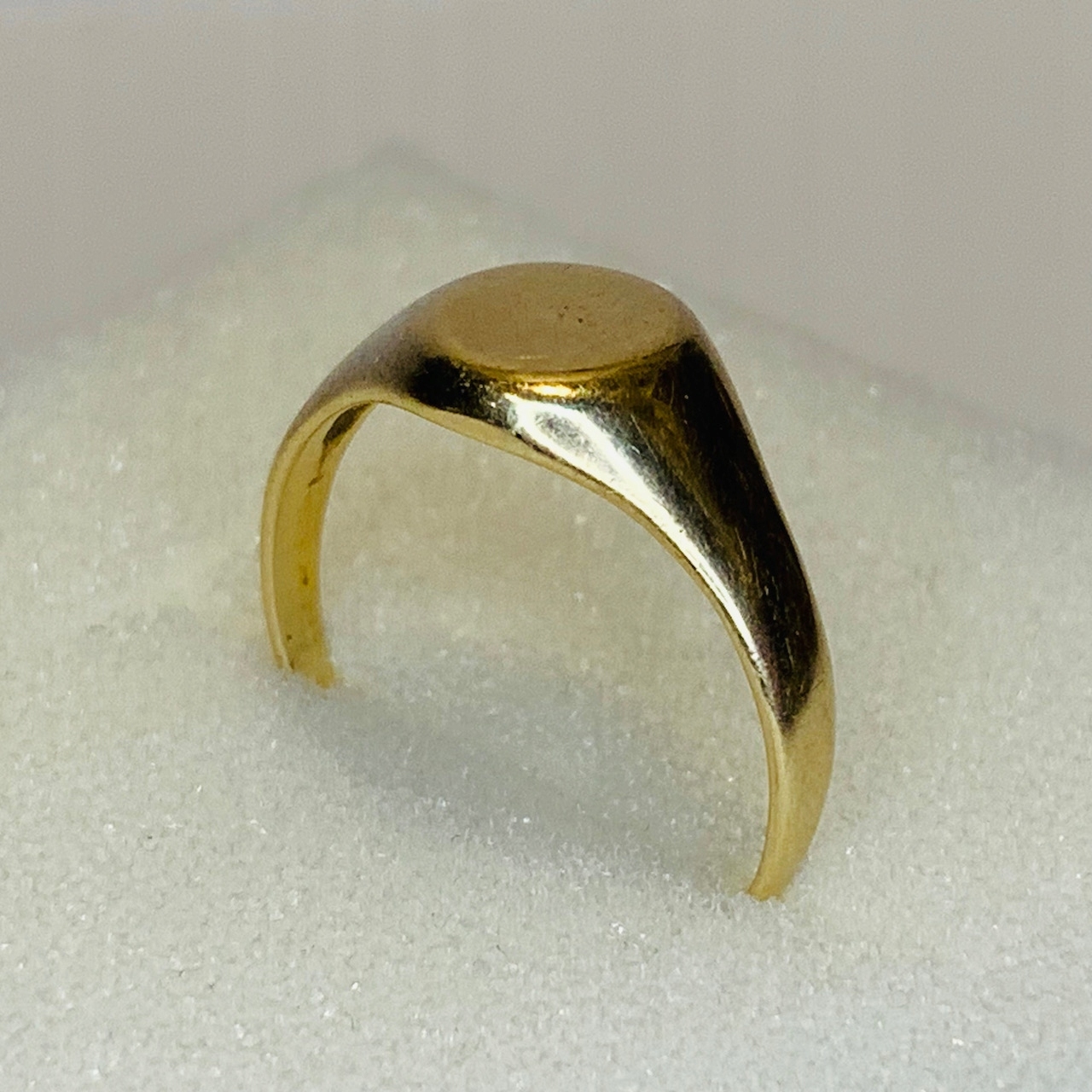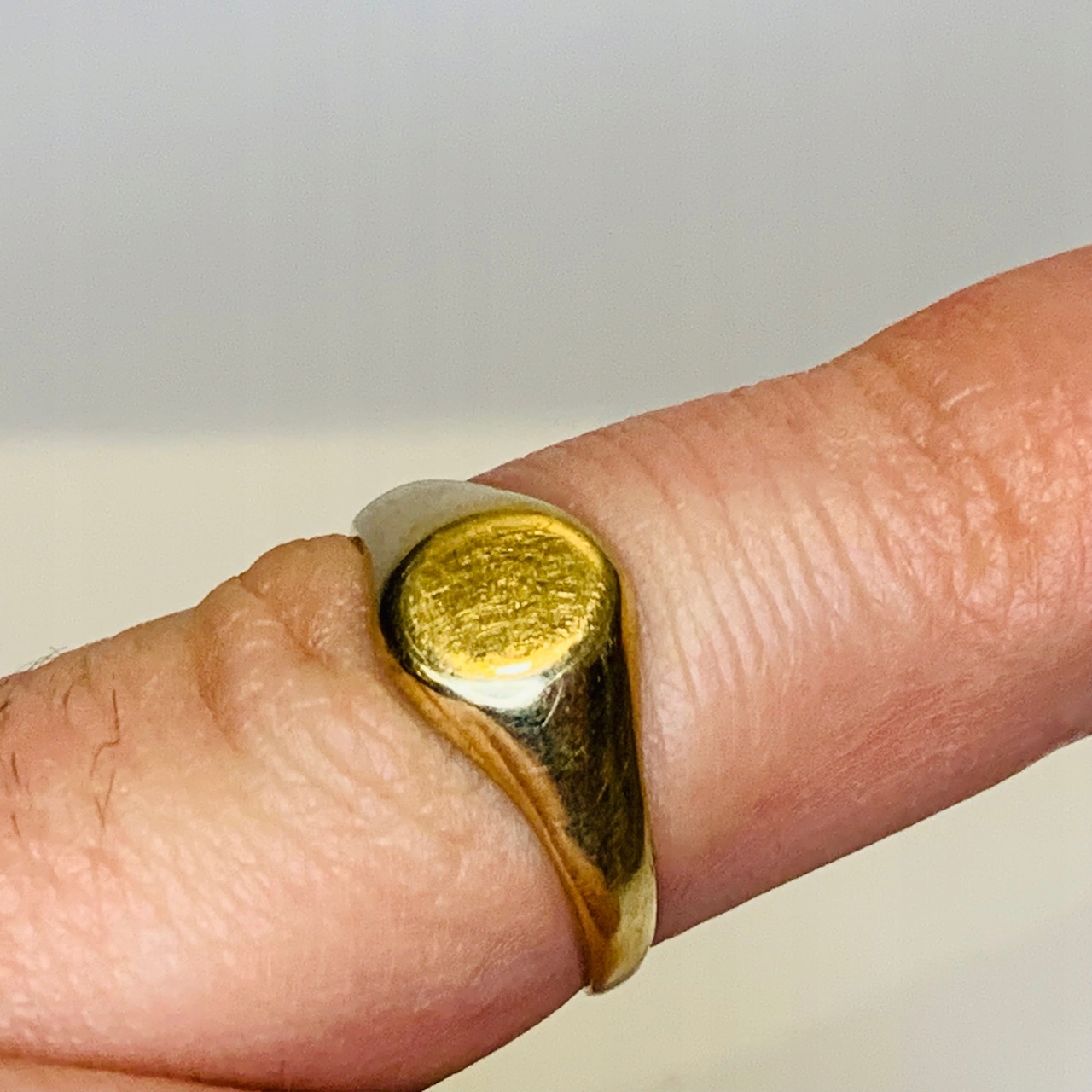 - Piękny sygnet wykonany z żółtego 14-karatowego złota.