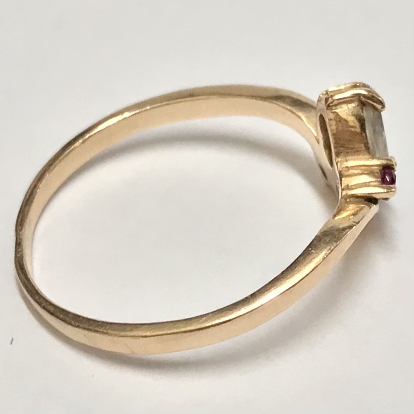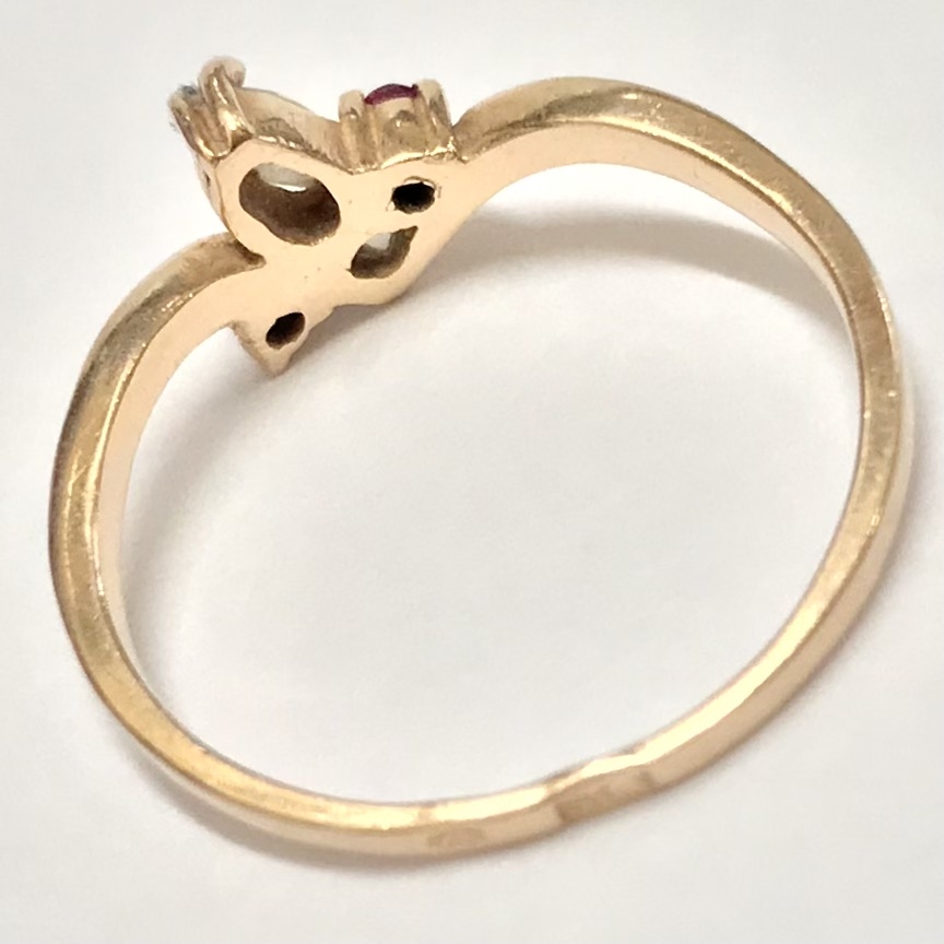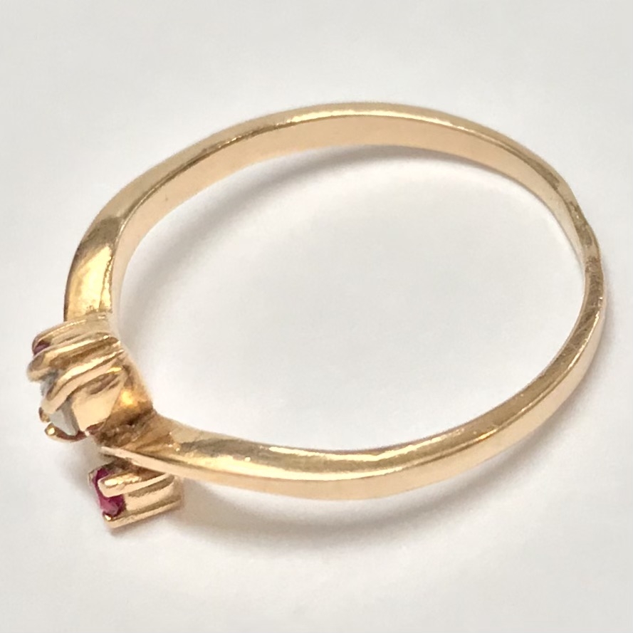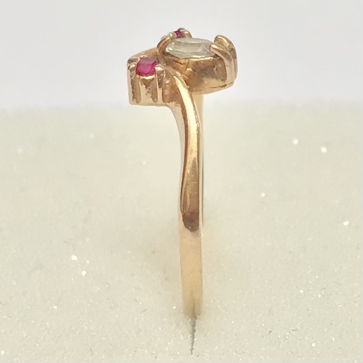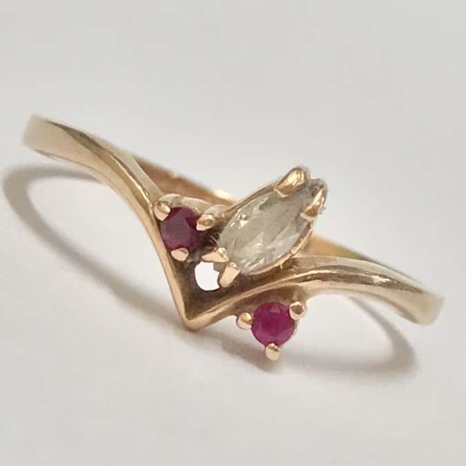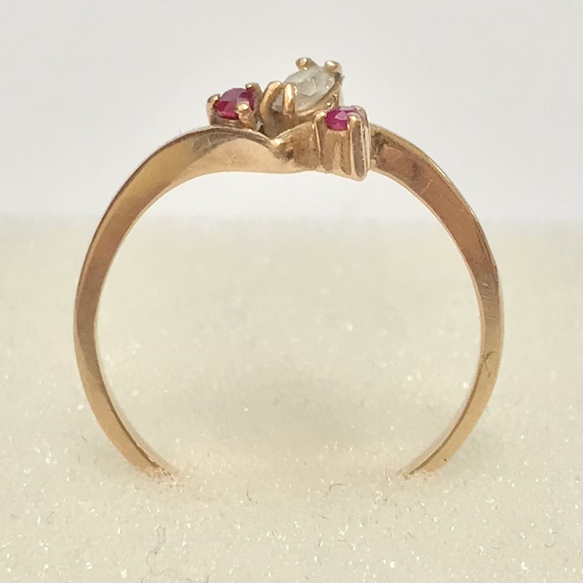 Złoty pierścionek 14K 585 z ametystami i kryształem – klasyk retro r. 15