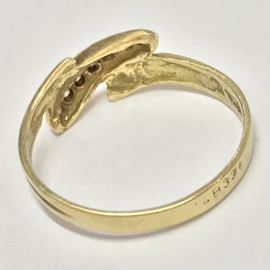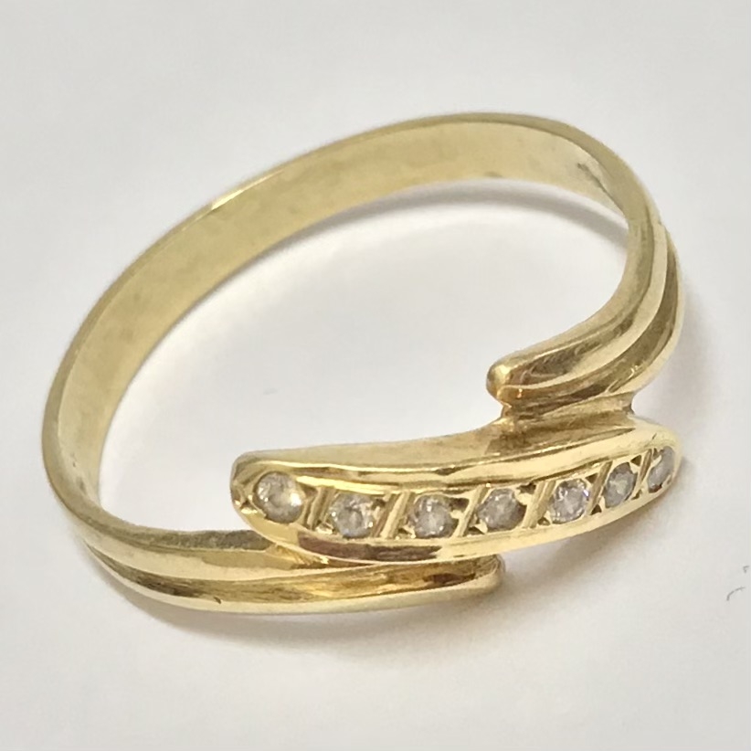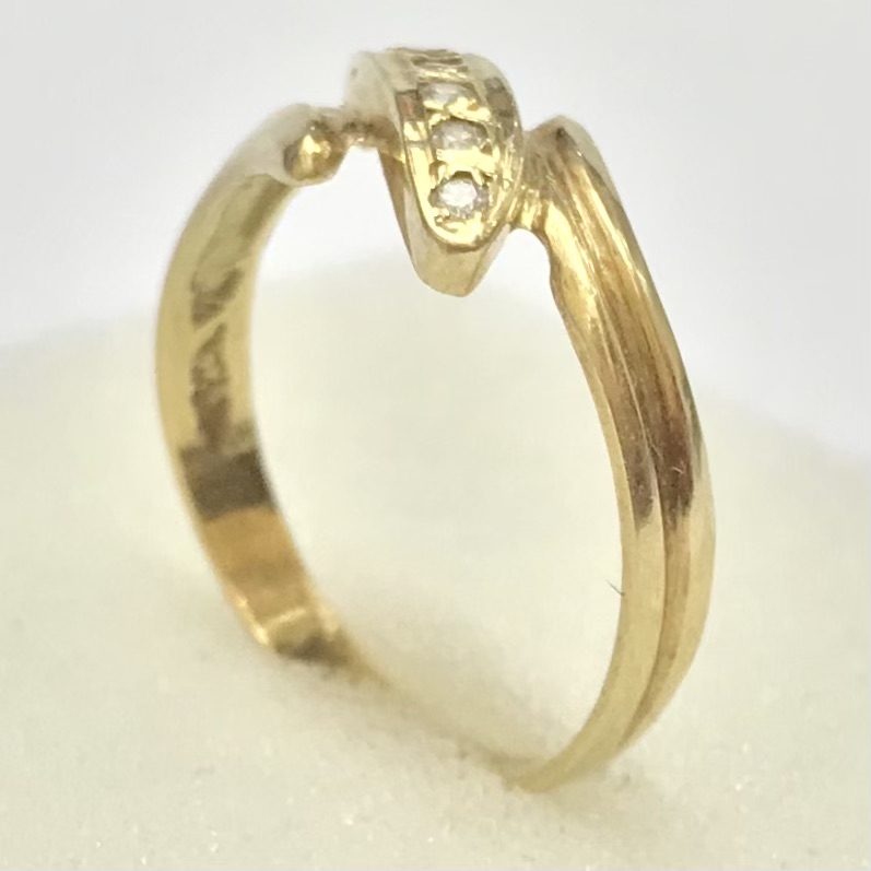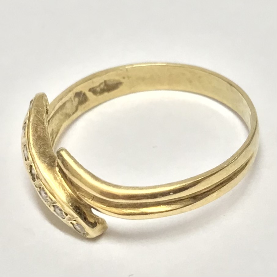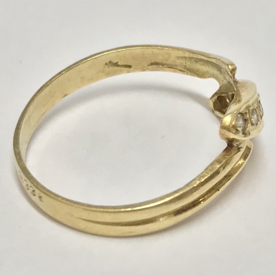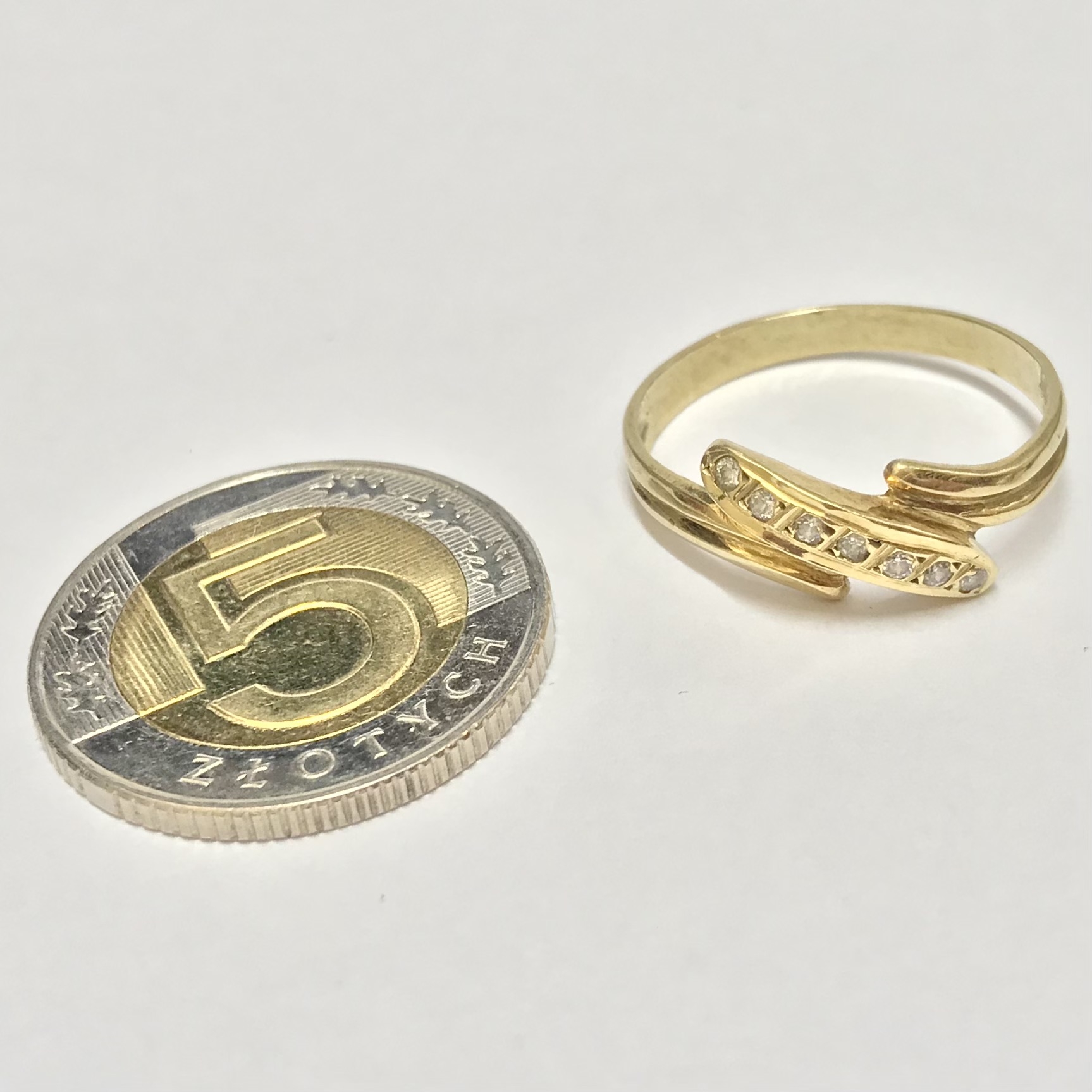 Złoty pierścionek 585 14K cyrkonie elegancki wzór bypass idealny na prezent